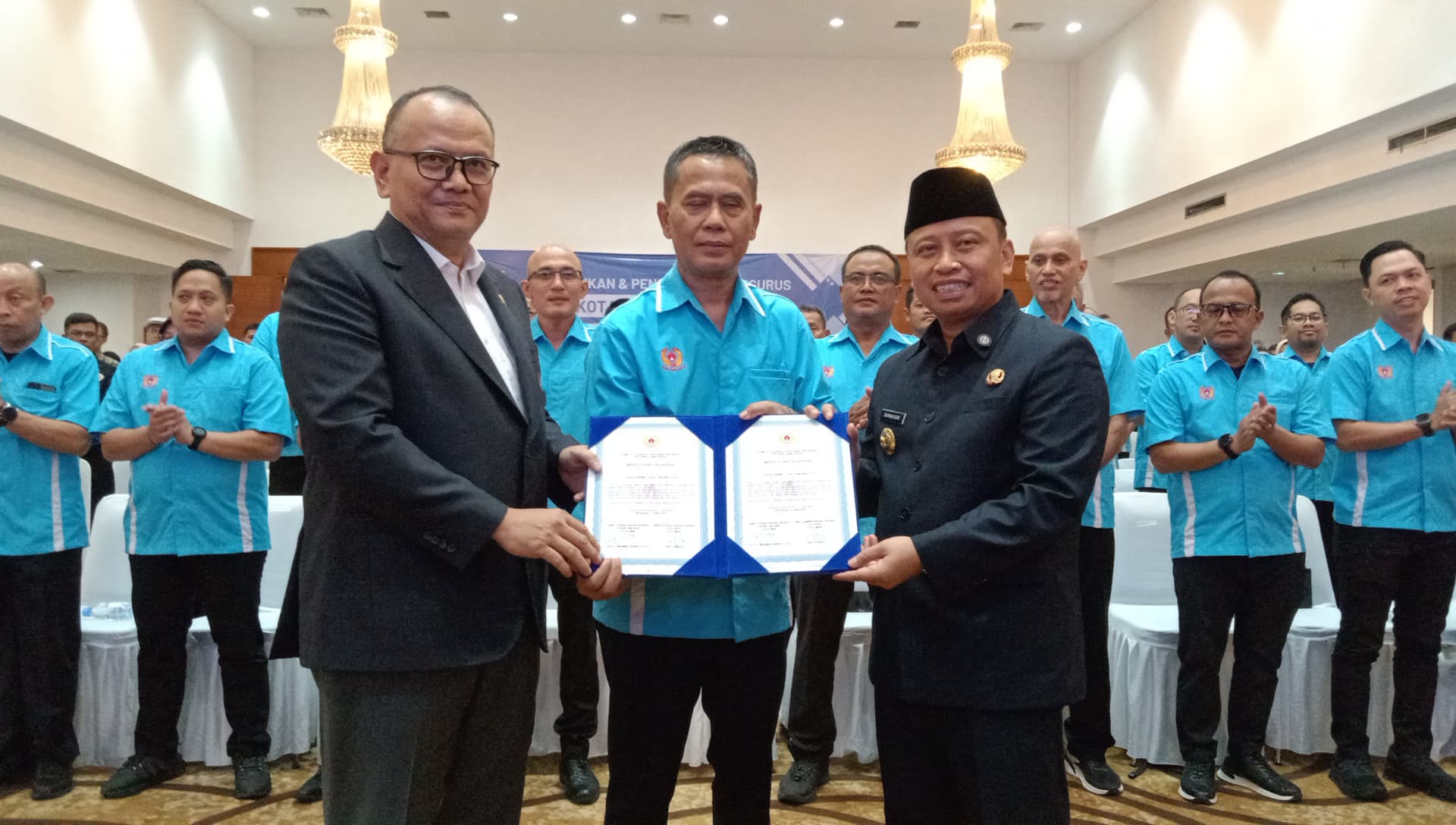 Merdekanusantara.com,Depok – Ketua Komite Olahraga Nasional Indonesia (KONI) Kota Depok, Herry Suprianto berserta pengurus resmi dilantik Ketua KONI Provinsi Jawa Barat, Muhammad Budiana di Gedung Baleka, Balaikota Depok, Jumat (13/06/2025).