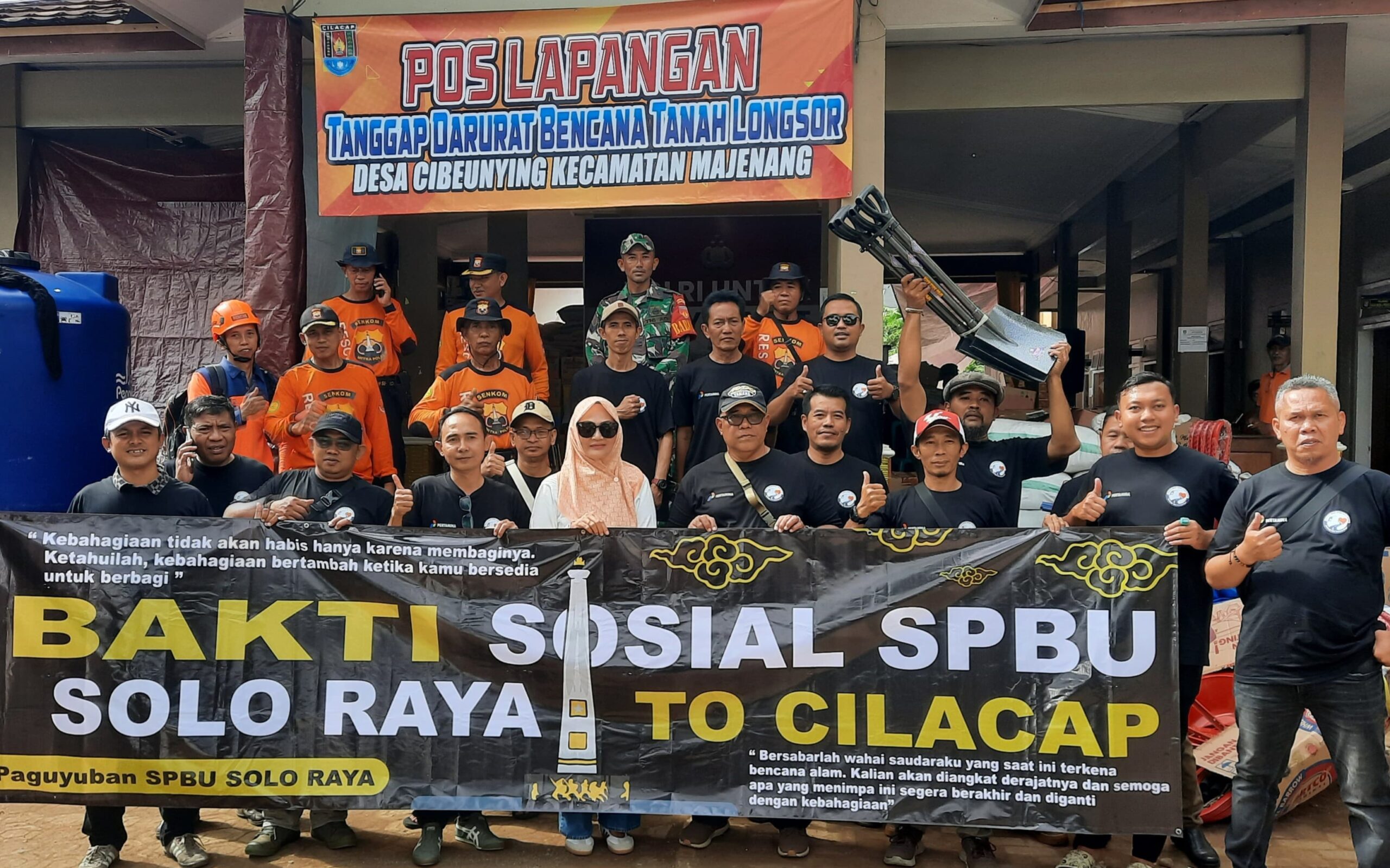 Paguyuban SPBU Solo Raya menggelar bakti sosial dan memberikan bantuan atas terjadinya bencana tanah longsor di majenang.
