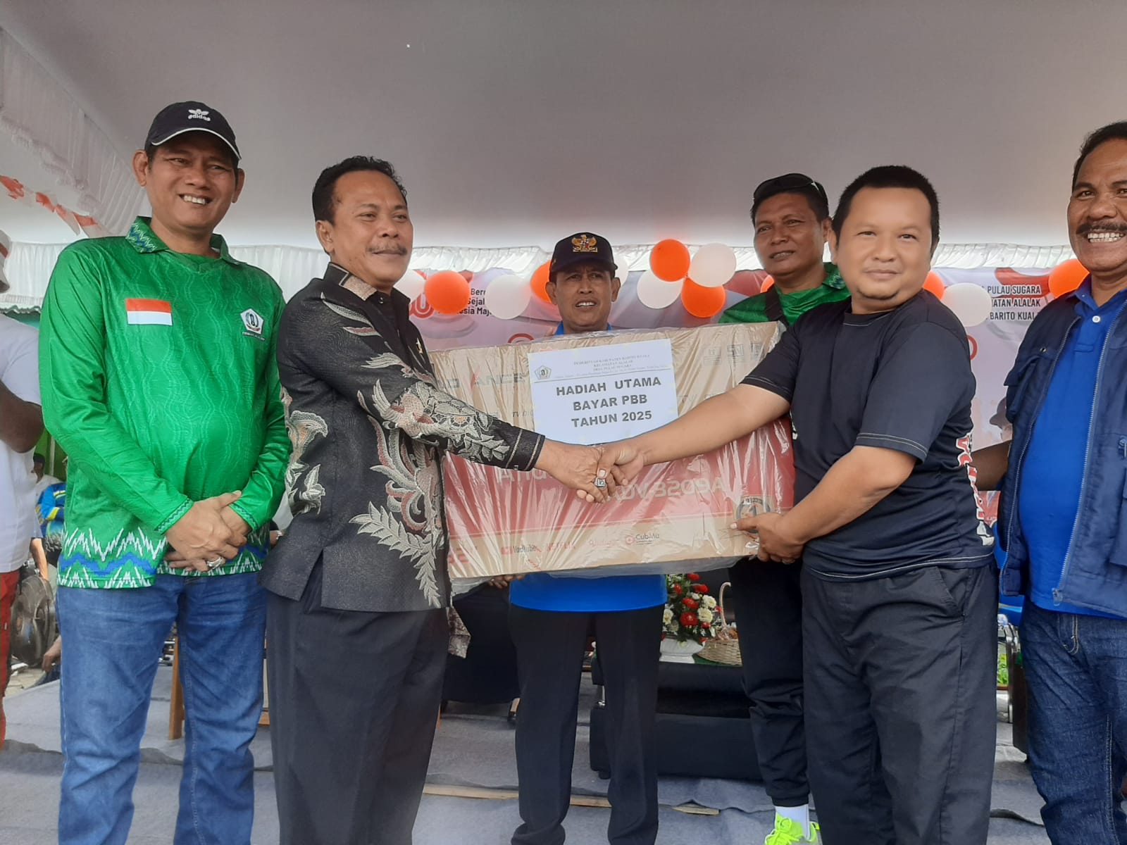 Memeriahkan ulang tahun proklamasi kemerdekaan RI ke 80 dan dirangkai hari jadi ke 50 desa Pulau Sugara Barito Kuala Kalimantan Selatan disambut antusias warga setempat dengan jalan sehat seputaran desa dengan banjir hadiah dan doptaez, minggu 24 agustus 2025.
